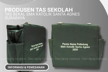 Zawa Agung Ciptakarya merupakan produsen dan suplier perlengkapan sekolah yang berlokasi di sidoarjo jawa timur, menerima juga pesanan tas sekolah custom dengan desain dan model yang bisa di sesuaikan, dengan model tas backpack atau tas ransel untuk sekolah atau instansi.