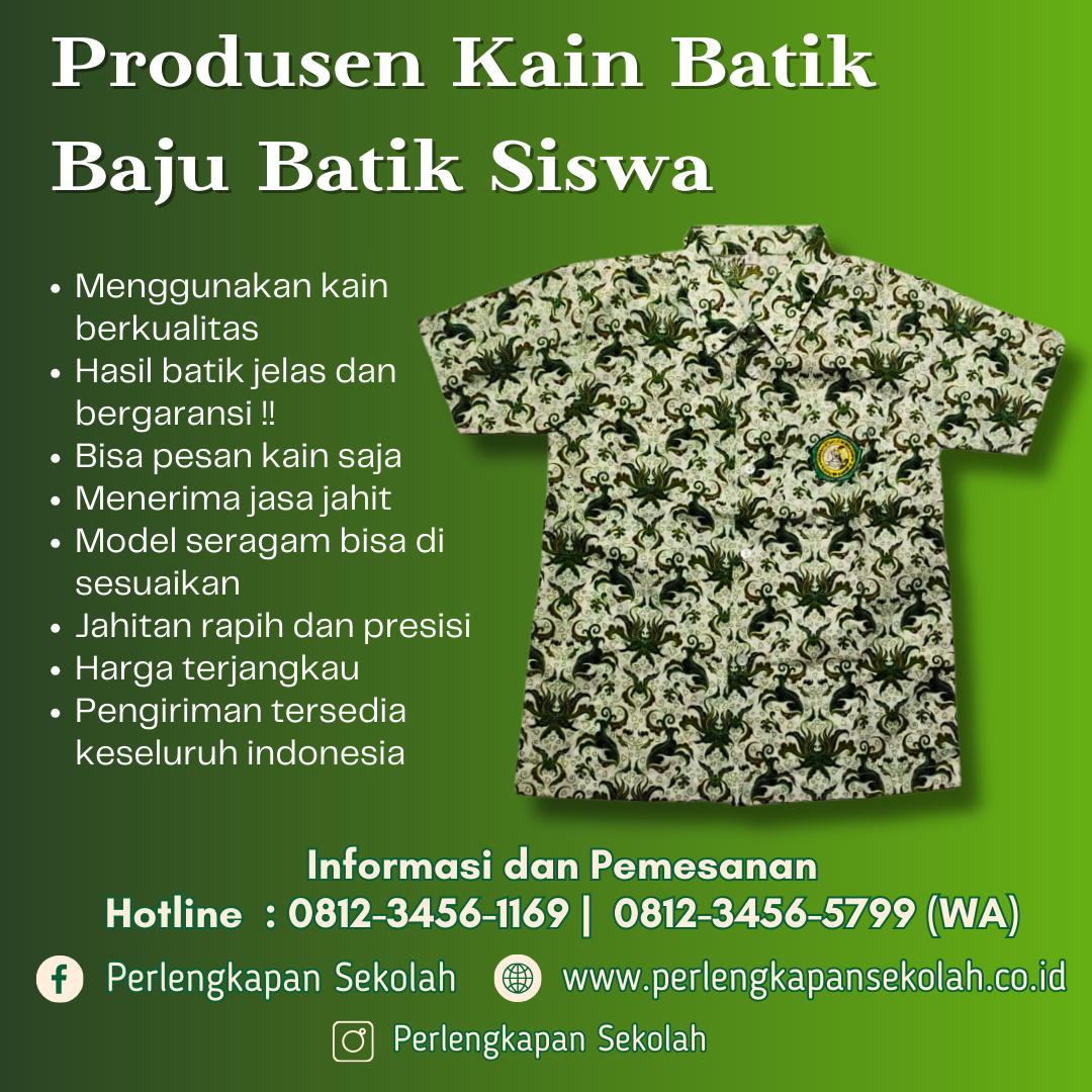 Kami membuat seragam batik dengan logo dan desain yang sesuai permintaan sekolah