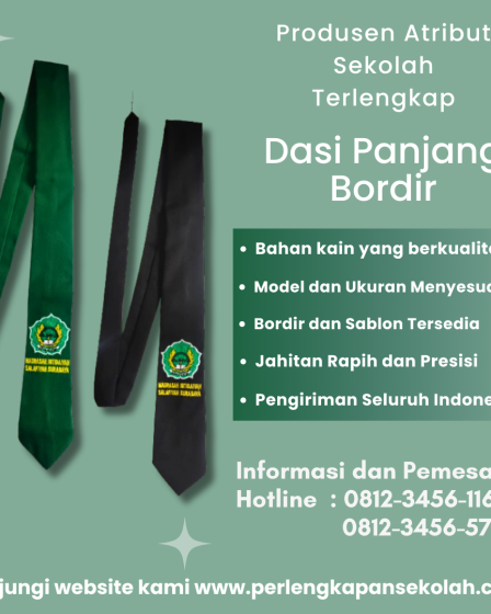 Produk sekolah yang satu ini wajib digunakan para siswa dan siswi.Banyak dari para siswa dan siswi. yang memiliki dasi yang tidak tahan lama, kebanyakan dari mereka memiliki kendala diperekat dasi yang sudah tidak berfungsi sehingga cepat lepas, untuk dasi panjang biasanya setengah dari panjang dasi hampir putus dikarenakan jahitan yang kurang rapat dan rapih . …