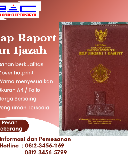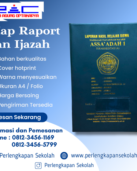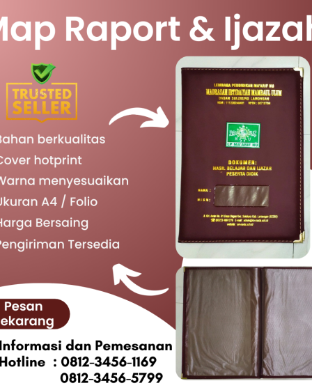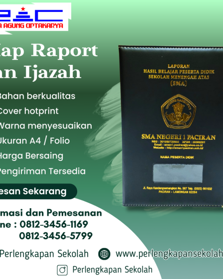 Kami menyediakan layanan pembuatan Map Raport/Ijazah Sekolah dengan standar kualitas tinggi untuk memenuhi kebutuhan administrasi lembaga pendidikan, mulai dari tingkat TK, SD, SMP, SMA/SMK, hingga perguruan tinggi. Produk kami dirancang untuk memberikan tampilan yang rapi, elegan, dan mencerminkan identitas institusi Anda. Keunggulan Layanan Kami Informasi dan Pemesanan :・Hotline : 0812-3456-1169 / 0812-3456-5799 (WA)・Telp : (031) …