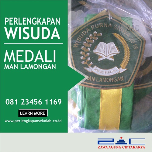 Perlengkapan Wisuda tidak akan lengkap tanpa adanya Medali Wisuda Zawa Agung Ciptakarya memberikan Perlengkapan Wisuda TERLENGKAP dengan KUALITAS TERBAIK Medali Wisuda seperti pesanan MAN LAMONGAN dibuat menyesuaikan permintaan pemesan. Tali wisuda yang menggunakan kain satin dengan panjang tali yang sesuai Tidak hanya medali namun ada baju toga, topi toga, tabung wisuda, map dll Pemesanan langsung …