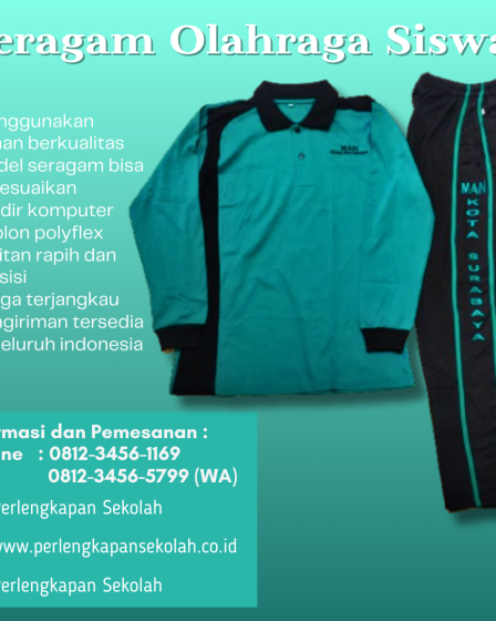 Seragam olahraga sekolah merupakan salah satu seragam sekolah yangpemakaiannya dikenakan saat kegiatan olahraga berlangsung.Dengan memakai seragam olahraga ini maka kegiatan olahraga menjadi aman dan nyaman.Hal ini dikarenakan pembuatan seragam olahragaini memakai bahan kain terbaik yang aman untuk pergerakan tubuh.Seperti Seragam olahraga MAN KOTA Surabaya ini kami buat sesuai pesanan dari bahan, logo yang di sablon, …
