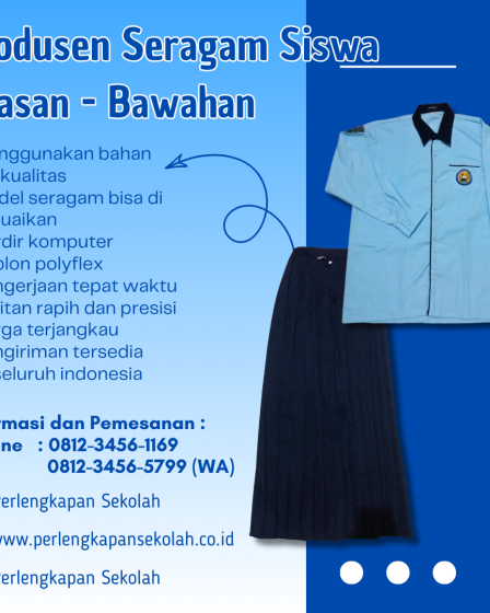 Kami adalah produsen atribut dan seragam sekolah berkualitas yang siap menjadi mitra dalam pengadaan aneka jenis pakaian seragam untuk instansi / sekolah Anda. Adapun produk-produk seragam yang bisa kami kerjakan mencakup: Untuk Seragam MA/SMA/SMK biasanya terdiri dari baju seragam harian, baju seragam batik, baju seragam olahraga dengan desain, Bahan, Model Seragam bisa di sesuaikan dengan …