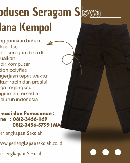 Celana kempol merupakan celana lapangan yang biasanya punya banyak kantong atau saku, di jawa timur celana kempol ini sudah sangat popular karena sebagai celana lapangan yang memiliki desain kuat tidak gampang robek. Celana Kempol Seragam Pramuka ini memang berbeda dengan celana seragam sekolah lainnya jadi celana ini sedikit lebih mahal, kami menyediakan celana panjang seragam …