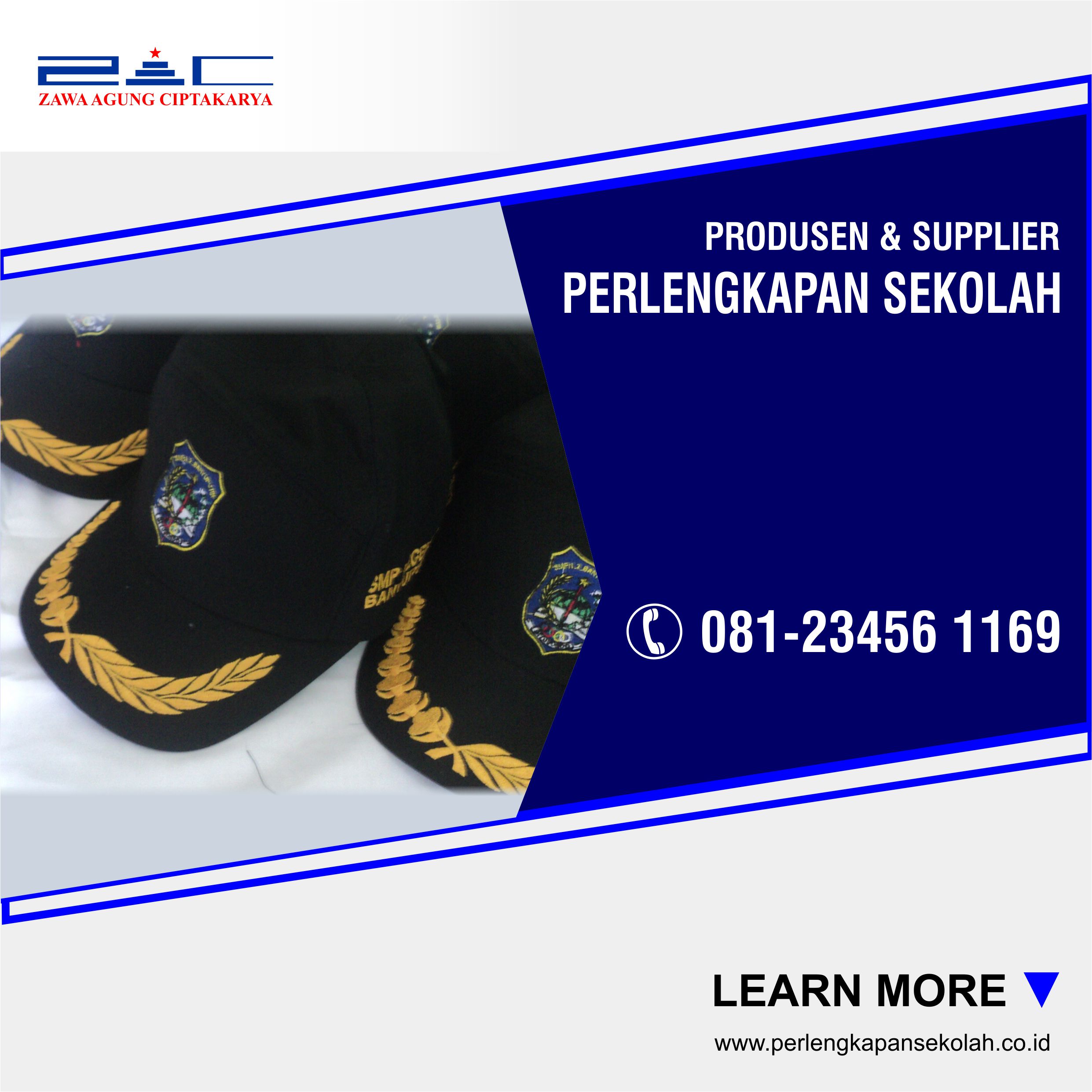 Membuat topi sekolah dengan bahan kualitas pilihan dan bordiran logo yang rapi.