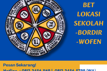 • Logo dan nama sekolah menggunakan proses bordir komputer