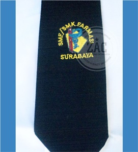 Logo dan nama sekolah bisa di sablon atau dibordir menggunakan mesin komputer