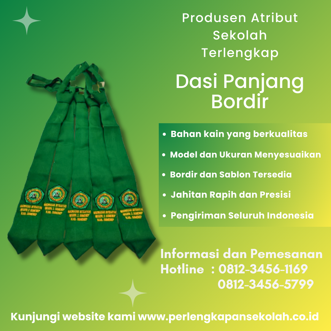 PRODUSEN DASI SEKOLAH BERLOGO , selain seragam dan perlengkapan sekolah lainnya kami juga memproduksi dasi sekolah baik dari tingkat SD/MI sampai PERGURUAN TINGGI dengan bermacam macam logo, baik logo tutuwuri maupun logo sekolahan.