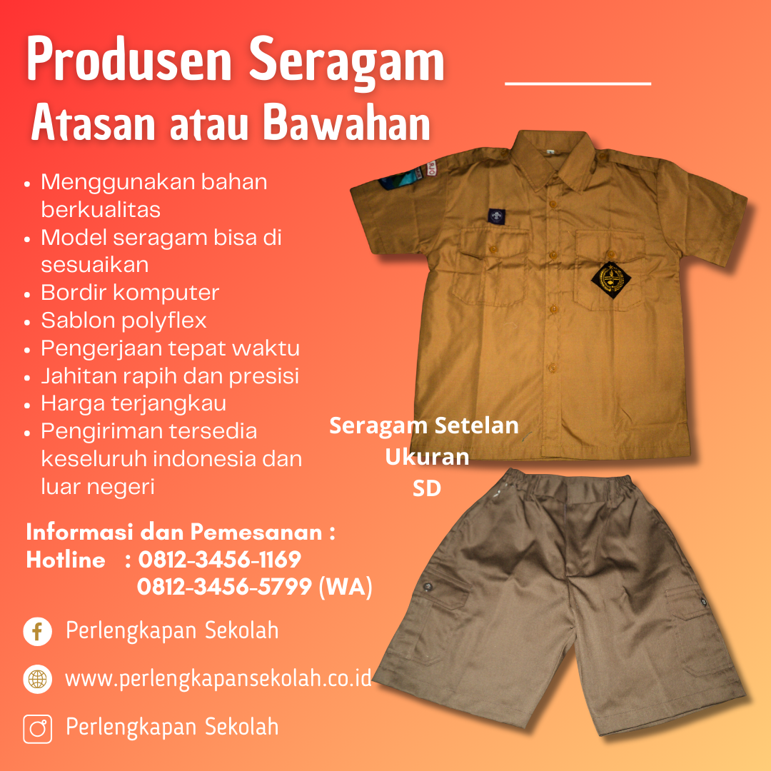 Seragam sekolah diperlukan oleh semua anak yang bersekolah. Mulai dari jenjang SD/MI, SMP/MTS, SMA/SMK/MAN membutuhkan seragam untuk bersekolah. Seragam merupakan perlengkapan yang wajib di miliki oleh pelajar SD hingga SMA. Salah satu baju seragam yang wajib dimiliki adalah seragam pramuka.