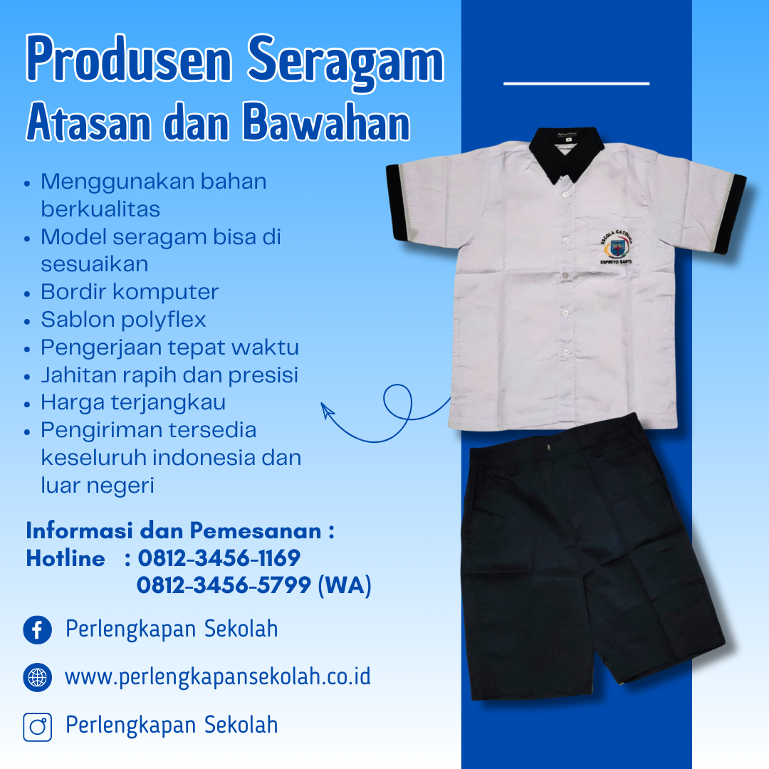 Kami melayani pemesanan Grosir Baju Seragam Sekolah mulai dari Seragam Putih, Pramuka, Batik, Rok, Celana, dll untuk jenjang sekolah  TK, SD/MI, SMP/MTs, SMA/MA & SMK dengan kualitas terbaik.
