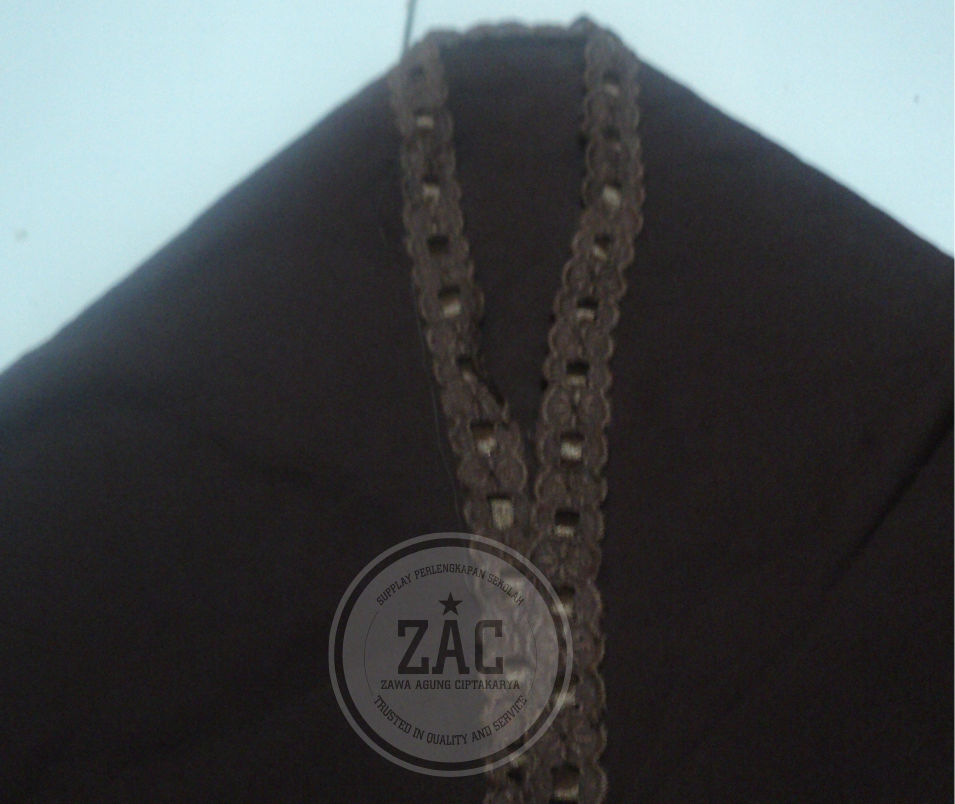 Renda dan logo sekolah jilbab yang sudah disesuaikan permintaan pemesan.