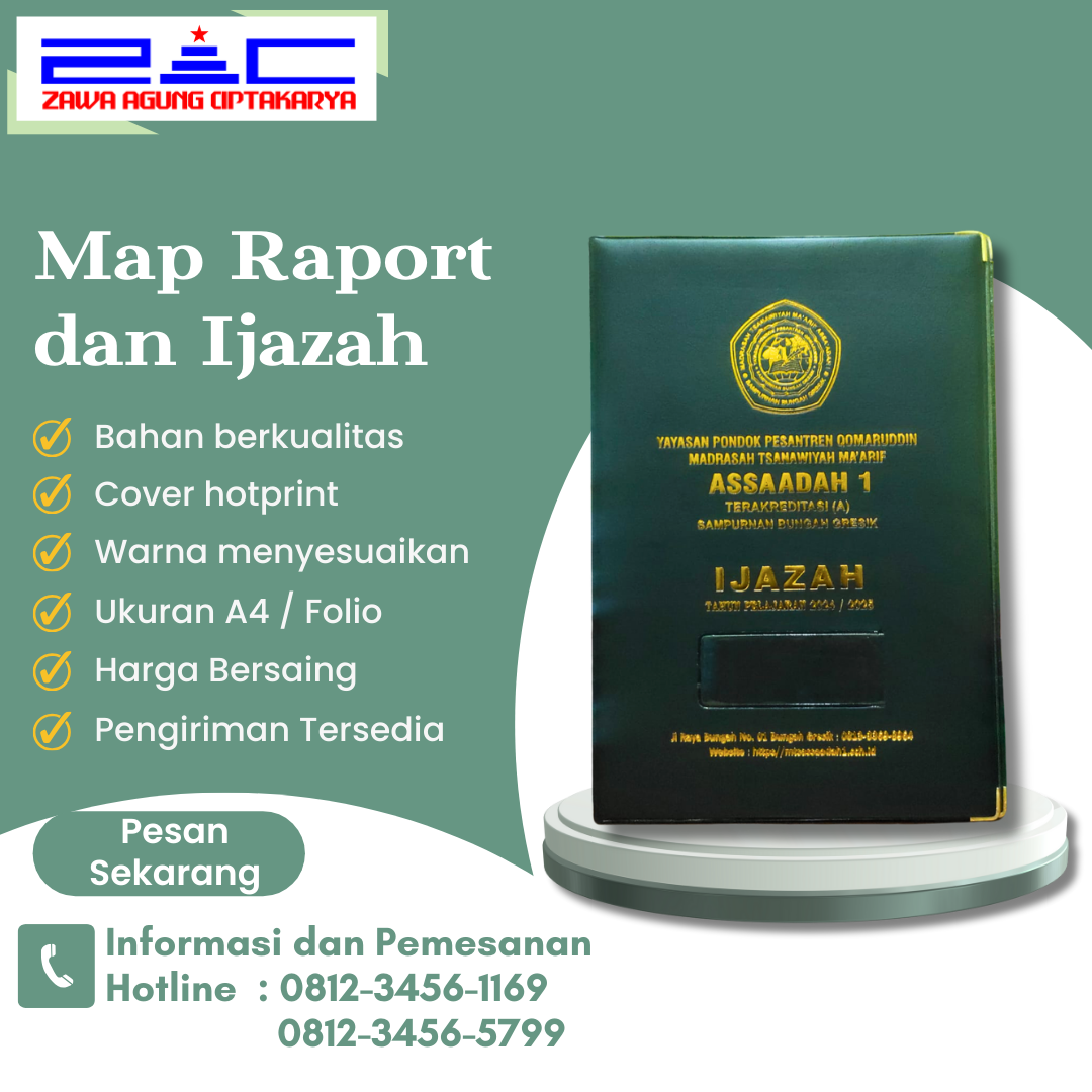 Selain map raport model press, kami juga membuat map raport dan ijazah dengan model jahit dan kantong.