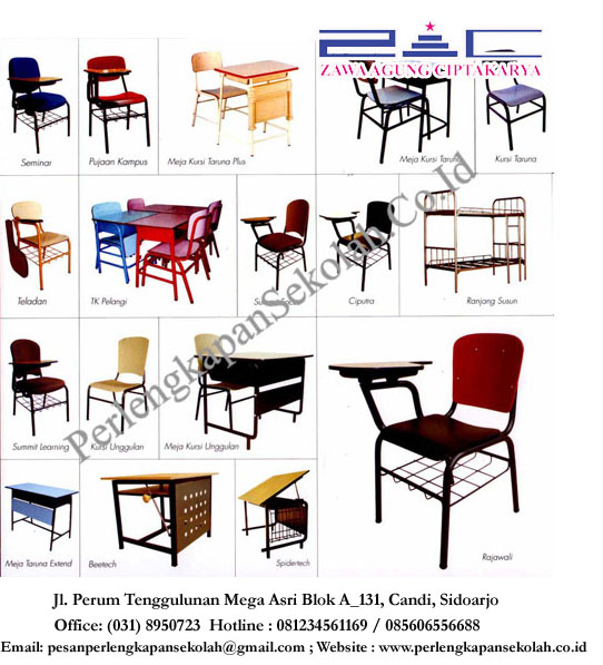 Kami supplier perlengkapan sekolah dan kantor juga menyediakan meja kursi untuk tingkatan PG – Kuliah. Bahan yang kami gunakan tidak mudah patah, kualitas oke,harga terjangkau.