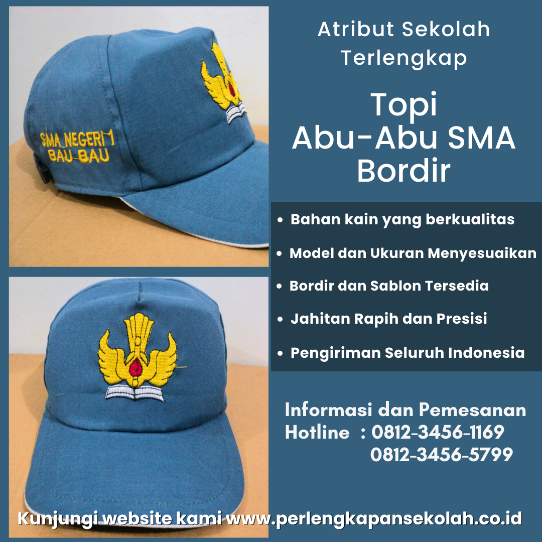 Kami menyediakan berbagai atribut sekolah mulai dari Topi sekolah, bed bordir, sabuk logo sekolah, kaos kaki logo sekolah dll. Bordir dari kami menggunakan bordir komputer yang hasilnya lebih rapi dan tentu lebih awet. Topi logo sekolah juga bisa menjadi sarana promosi dan identitas sekolah.