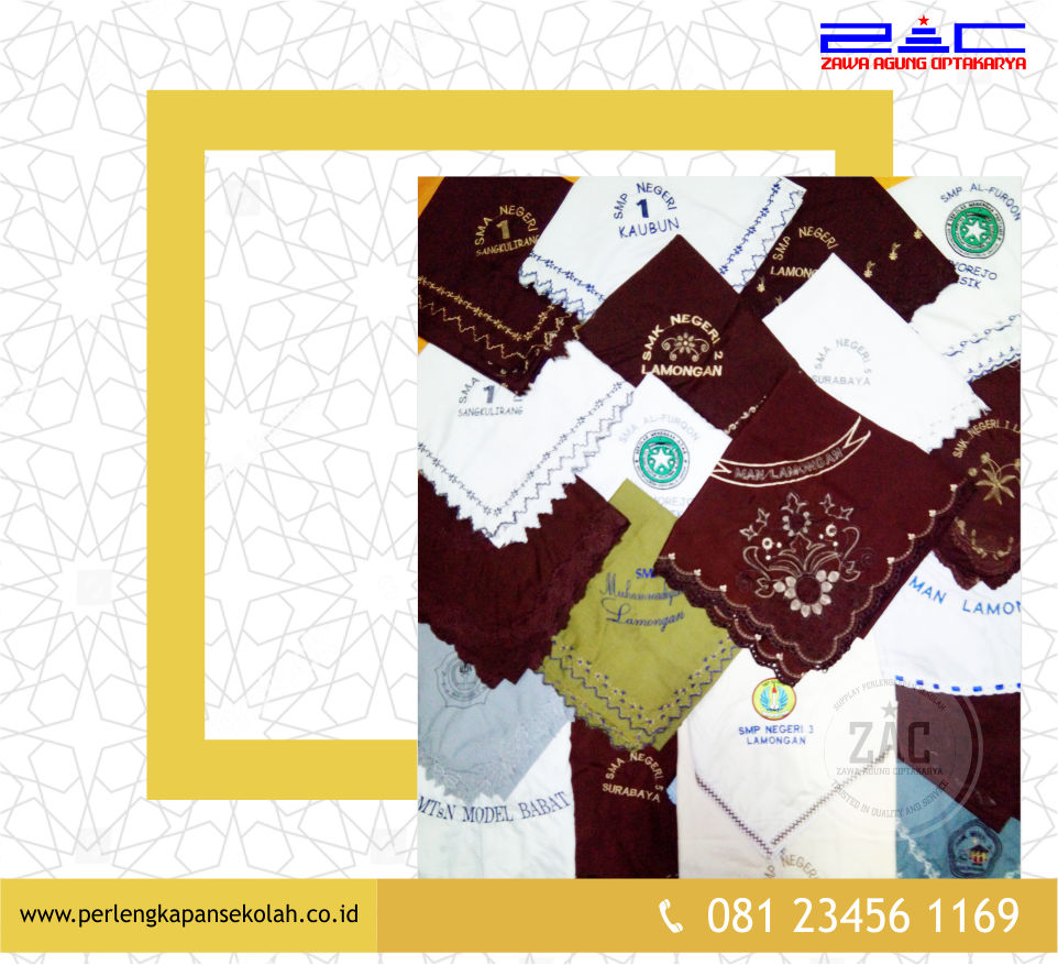 Produk kami menyangkut : beragam perlengkapan sekolah beserta atribut siswa yang berhubungan. Adapun hasil produksi kami meliputi sebagai berikut : Topi, Dasi, Seragam sekolah, Baju Wisuda dan accessoriesnya(plakat,tabung ijazah, kalung dsb), Hasduk, Badge, Nama siswa, Sabuk, Atribut pramuka, Kaos Kaki, Tas sekolah, dan masih banyak yang lainnya.