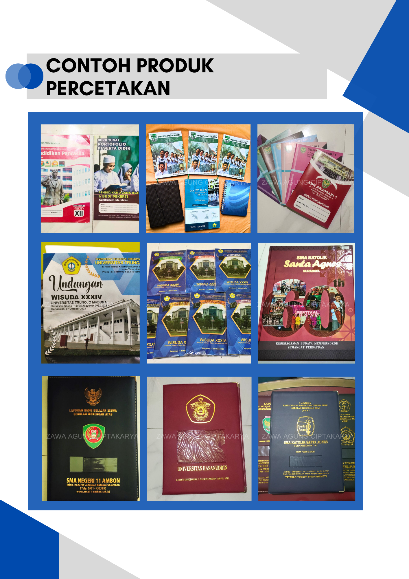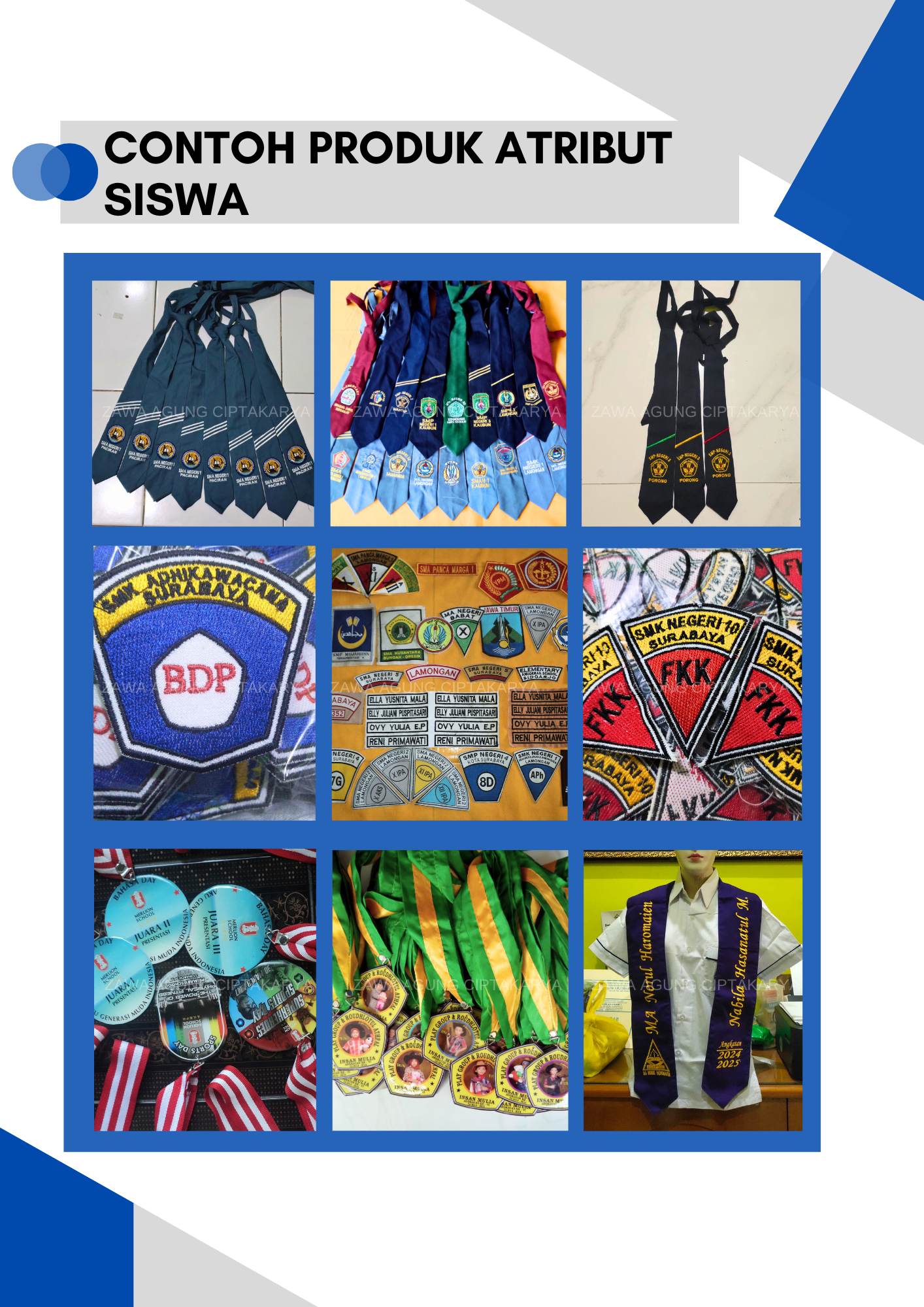 Zawa Agung Ciptakarya atau yang lebih dikenal brending Sy. Zahra, Aqilahrahma, Azhka, NUswantoro berdiri pada tahun 2007 dalam usaha penyediaan sarana promosi dan perlengkapan sekolah.